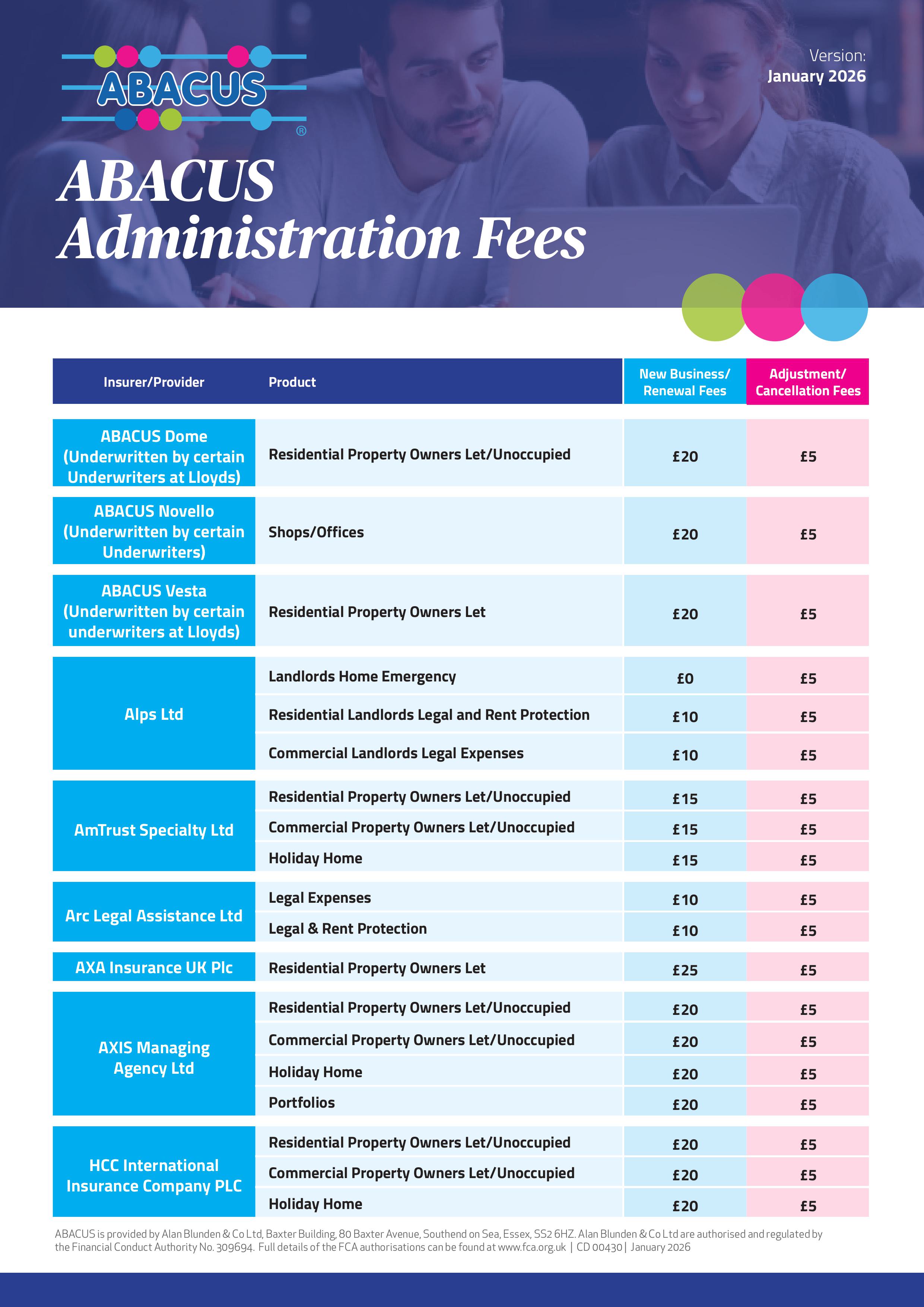 In addition to the premium charged by insurers, ABACUS make additional charges to cover the administration of our mutual customer’s insurance.